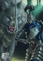 Amazon Com Chenchen Dark Souls Poster Picture Sif And Artorias Canvas Wall Art Print Modern Home Room Decor Samurai Warrior And Wolf Poster 16x24inch No Framed Posters Prints